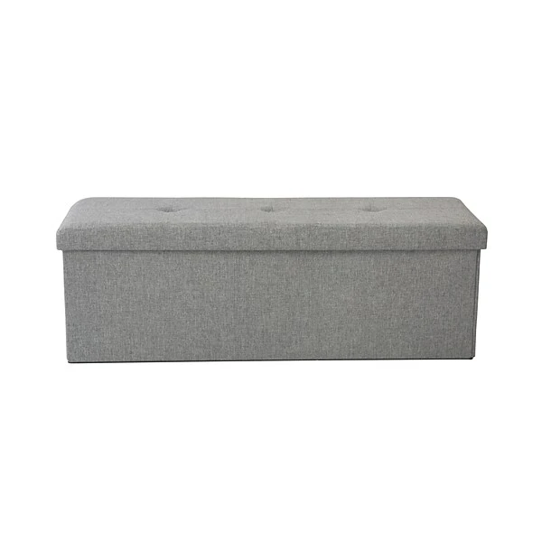 “This Simplify linen-look storage ottoman is the versatile, spacious ottoman you have been waiting for. The 1-2-3 set-up construction is sturdy & solid while the decorative appearance matches your interior decor & furniture. It may work as: Storage Chest