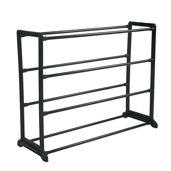 Tidy up your space with the Simplify stackable shoe shelf. This four tier shoe rack holds up to 12 pairs of shoes.