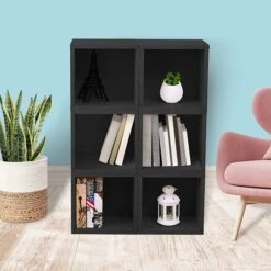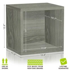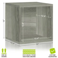 Way Basics 15″H Large Eco Modern Stackable Storage Cube, Gray Wood Grain (BS-SCUBE-GY)