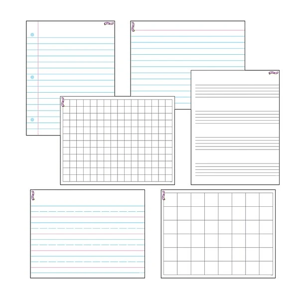 Trend Enterprises® Wipe Off® Papers & grids combo pack has reusable surface for customizing activities, projects & presentations. Chart pack includes Notebook Paper, Index Card, Graphing Grid, Graphing Grid, Music Staff Paper & Handwriting Paper.