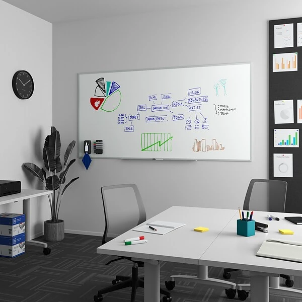 - 8′ x 4′ durable dry-erase board with aluminum frame
