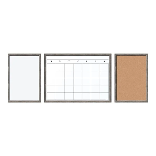 The ultimate home office command center includes a dry-erase calendar, dry-erase board, cork board, six arrow push pins, four magnetic dry-erase markers, four magnets, and mounting hardware. Rustic 0.75″ decorative MDF (medium density fiberboard) frame adds durability and provides a designer look.