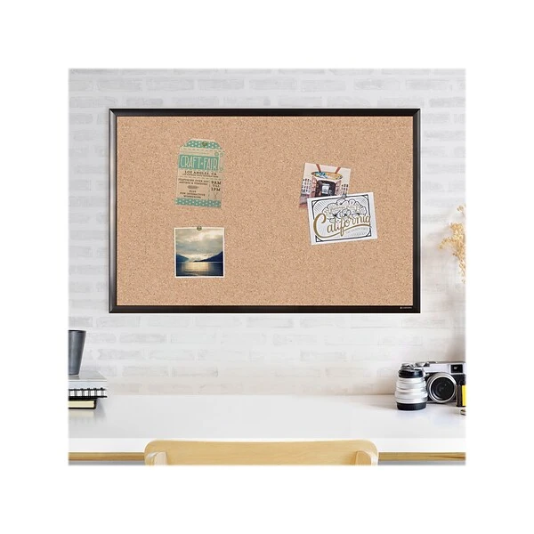Self healing, natural cork surface of this U Brands bulletin board resists push after each use.