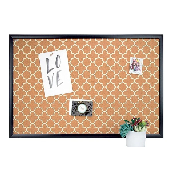 U Brands black wood finish, modern decor bulletin board is a perfect and functional solution to pin your notes and messages in any office, home or commercial environment. Clean, contemporary and simple product design lines will add a touch of subtle style to your wall. Fun and fashionable cork design print will enable you to stand out from the remaining everyday corkboards in your personal space.