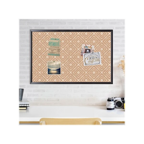 This modern black-finish frame cork board is a perfect and functional solution to pin your notes and messages in any office, home, or commercial environment. Use any pushpins, thumbtacks, or map pins to pin all of your notes, messages, pictures, memos, calendars, menus, reminders, and more. Due to the dense board backing material under the board’s cork surface, your pushpins are firmly gripped and stay in place without falling out. The natural self-healing cork surface hides pushpin holes once the pushpins are taken out. This bulletin board has a universal mounting system, as it can be hung vertically or horizontally to fit your allocated space. Mounting hardware and instructions are included for quick and easy mounting. The board is packaged with extra supportive corrugate material that is highly resistant to damage during shipping; all corrugated material can be recycled once unpacked.