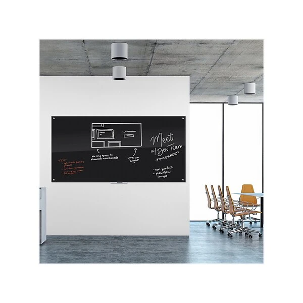 This U Brands dry-erase whiteboard features black glass surface and works great with U Brands liquid glass markers.
