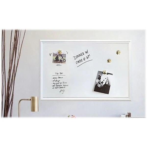 This U Brands dry-erase whiteboard features magnetic surface that is highly durable, erases easily, and resists staining and ghosting. Comes with a decorative wood-style white frame, that will add a subtle hint of style to any home or office.