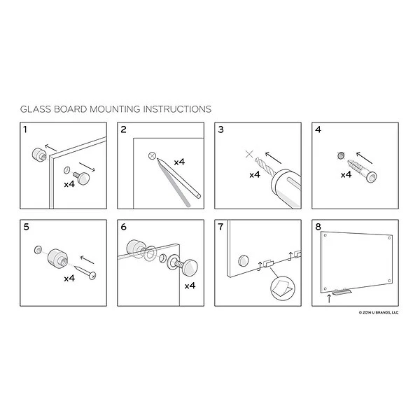 This white frosted magnetic glass dry erase board is a perfect and functional solution for the frequent and heavy usage areas of your office, school classroom, home or any commercial space. Clean, contemporary and frameless product design lines will add a touch of subtle style to your wall. The modern frameless feature enables you to hang multiple glass boards adjacent to each other and expand the writing surface to fit your custom space needs. The board’s premium magnetic ultimate glass writing surface will never stain or ghost. All ink erases easily with a simple eraser and the glass surface continuously outperforms all traditional melamine or painted steel dry erase writing surfaces. Occasionally, use any dry erase board spray or wet dry erase board wipes after continuous use to clean the writing surface. The glass magnetic surface works with high energy rare earth magnets. Although all dry erase and glass markers work well with this board, the U Brands dry erase markers provide the ultimate writing and eras-ability experience. For safety, the board is made from tempered glass as well. This whiteboard board has a universal mounting system, as it can be hung vertically or horizontally to fit your allocated space. All wall hanging hardware is hidden under the mounting bolts for a sleek and modern appearance. Mounting hardware and instructions are included for quick and easy mounting. The board is packaged with extra supportive corrugate material that is highly resistant to damage during shipping; all corrugated material can be recycled once unpacked.
