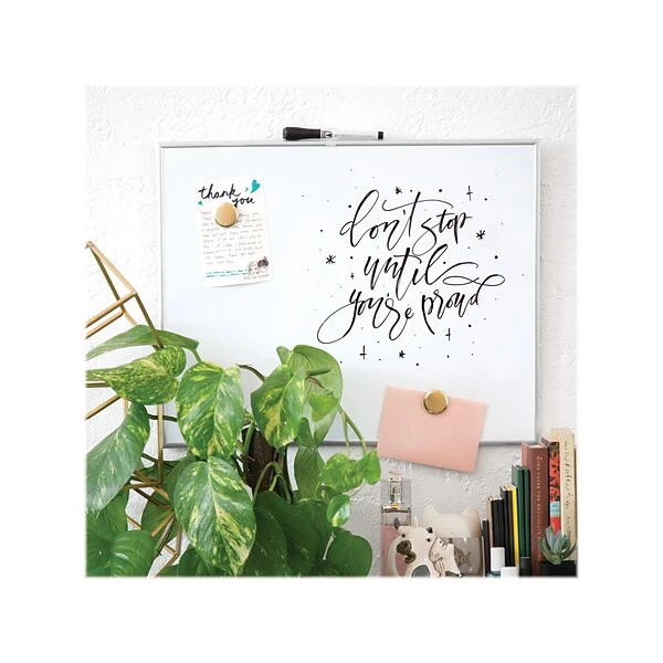 The non-magnetic melamine dry-erase surface of this U Brands whiteboard is great for light use.
