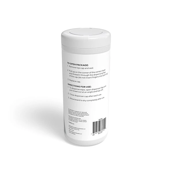 Maintain dry-erase boards in between meetings or lectures with these dry-erase board wipes. The premoistened wipes are non-toxic and odorless for safe use and easily remove dry-erase marker from a range of surfaces. A dispenser cap makes it simple to remove each wipe as needed. With 50 disposable cloths in the container, these TRU RED™ dry-erase board wipes handle daily maintenance.